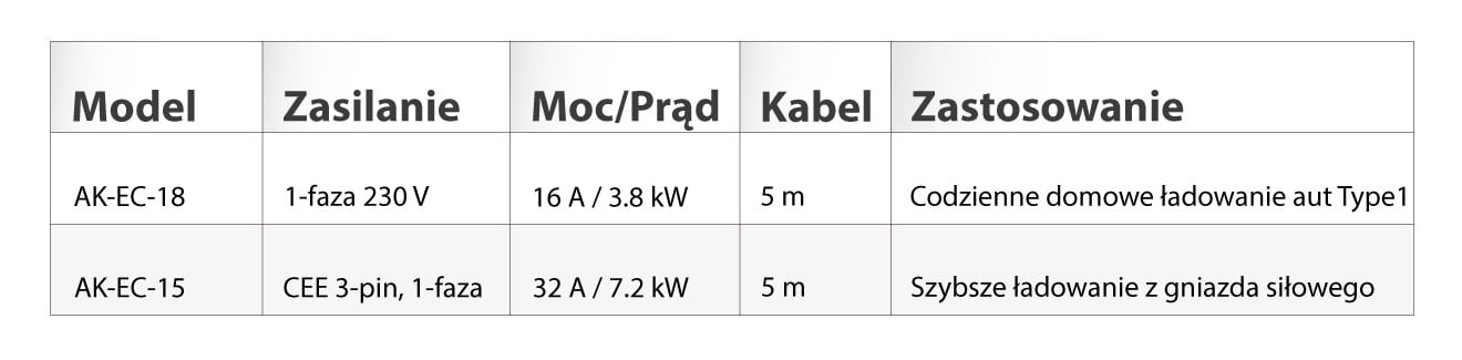 AK-EC-18 (Type1) – idealna do codziennego ładowania aut ze złączem Type1