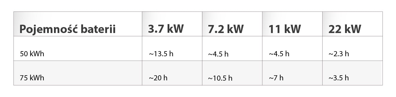 Bateria powyżej 50 kWh i intensywna eksploatacja – warto rozważyć 7,2–22 kW