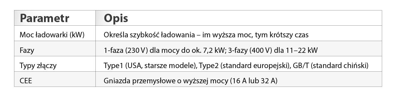 Przed wyborem ładowarki sprawdź specyfikację pojazdu w instrukcji, karcie technicznej lub konfiguratorze producenta.