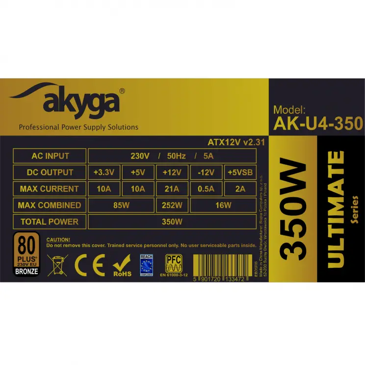 Zasilacz AK-U4-350 serii UItimate to źródło energii do standardowych konfiguracji komputerów stacjonarnych PC. Idealnie sprawdzi się zarówno w systemach biurowych, jak i rozwiązaniach typowo domowych.