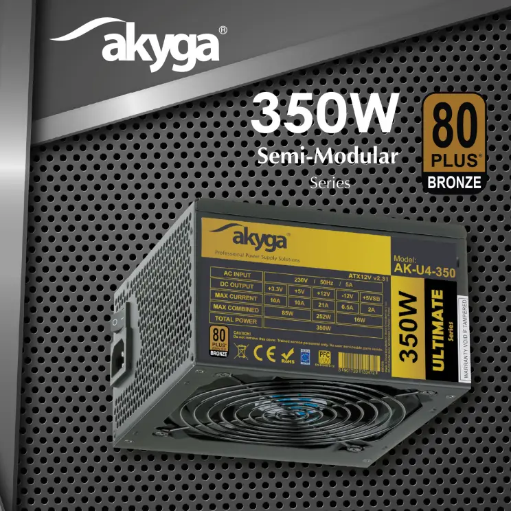 Zasilacz AK-U4-350 posiada dużą sprawność, dzięki temu zasilanie jest efektywniejsze, a zużycie energii niższe. Produkt charakteryzuje się efektywnym chłodzeniem podczas pracy na najwyższych obrotach, które rozwiązano przez wbudowany 120 mm wentylator. Za efektywność wiatraka odpowiada sterownik, który kontroluje prędkością obrotów w zależności od temperatury podzespołów. Co więcej, długie przewody zasilające pozwalają na swobodną instalację w standardowych obudowach. Co przy odpowiednim ułożeniu zwiększa wydajność chłodzenia wewnątrz obudowy komputera. Zapewnieniem niezawodności zasilacza jest wydłużona gwarancja na 36 miesięcy.
