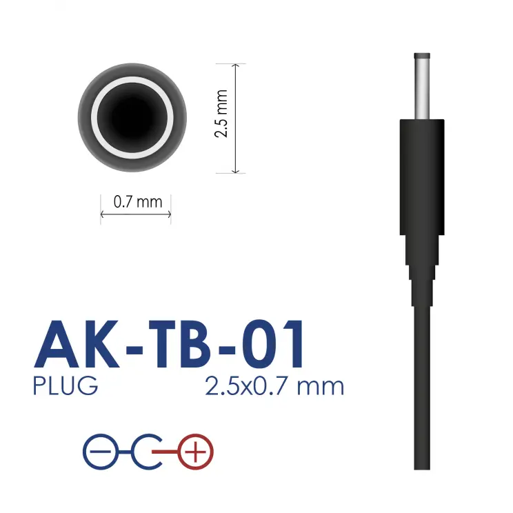 Akyga® AK-TB-01 to zasilacz sieciowy do różnych typów tabletów i urządzeń zasilanych prądem o parametrach 5V/2A, o mocy 10W oraz z wtyczką 2.5*0.7 mm.